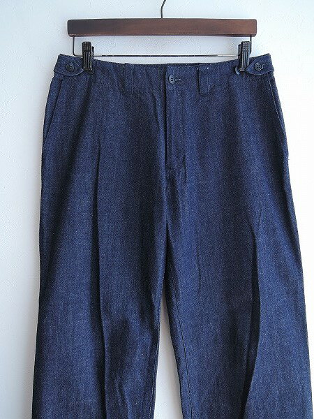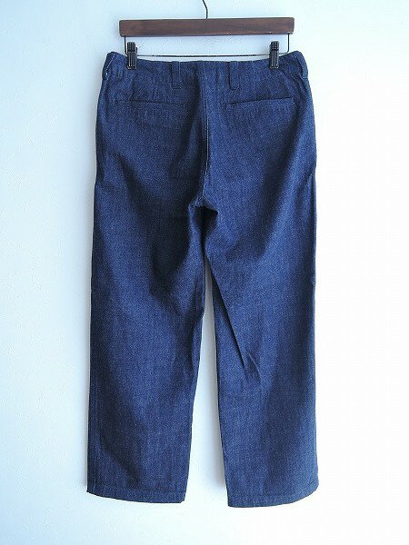 カラーはインディゴネイビーで、ノンストレッチのデニム地で仕立てられています。