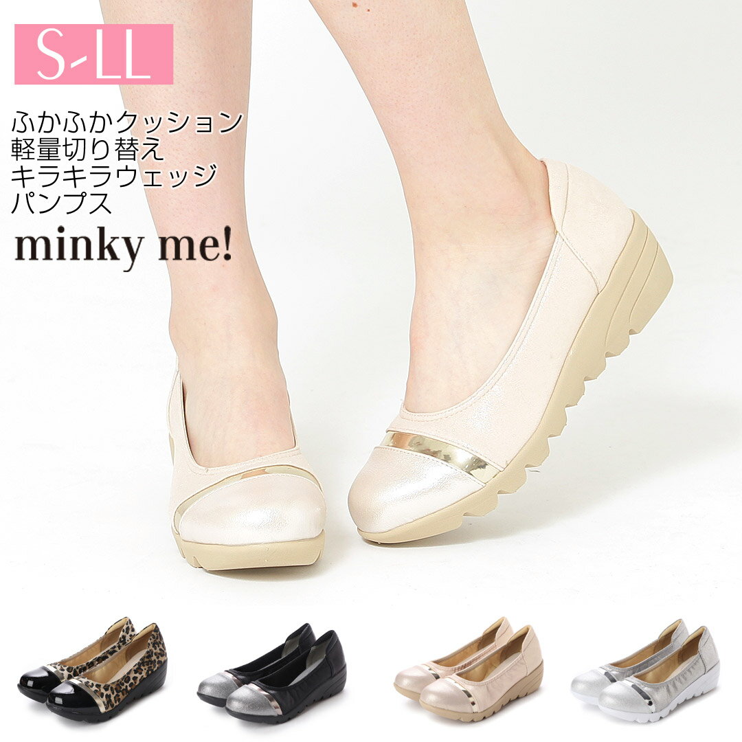 minky me!(ミンキーミー) ふかふか クッション 軽量 切り替え キラキラ ウェッジ パンプス コンフォート スニーカーパンプス 楽ちん 万能 春夏 メタリック 低反発インソール 歩きやすい 5cmヒール ブラック シルバー レオパード アニマル ピンクゴールド 靴 母の日