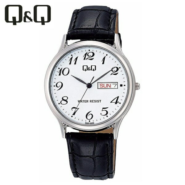 【全国送料無料/代引き不可】[シチズン キューアンドキュー]CITIZEN Q&Q 腕時計 スタンダード アナログ 革ベルト 日付 曜日 表示 ホワイト A204-304 メンズ ★チープシチズン チープカシオ 最安値