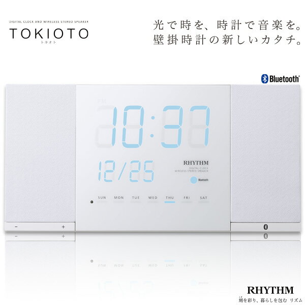 ブルートゥース Bluetooth スピーカー スマホ 壁掛け 置き 時計 オーディオ クオーツ カレンダー デジタル ワイヤレス TOKIOTO トキオト 8RDA71RH03 ホワイト 【お取り寄せ】【令和 母の日 感謝 祝】